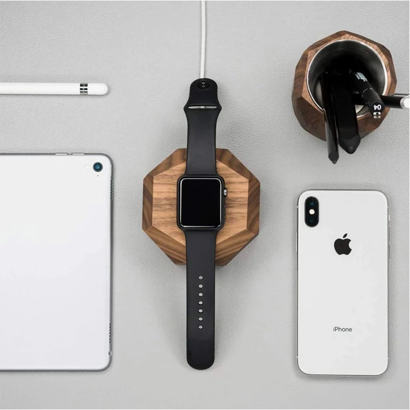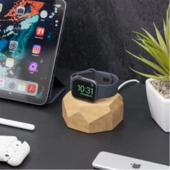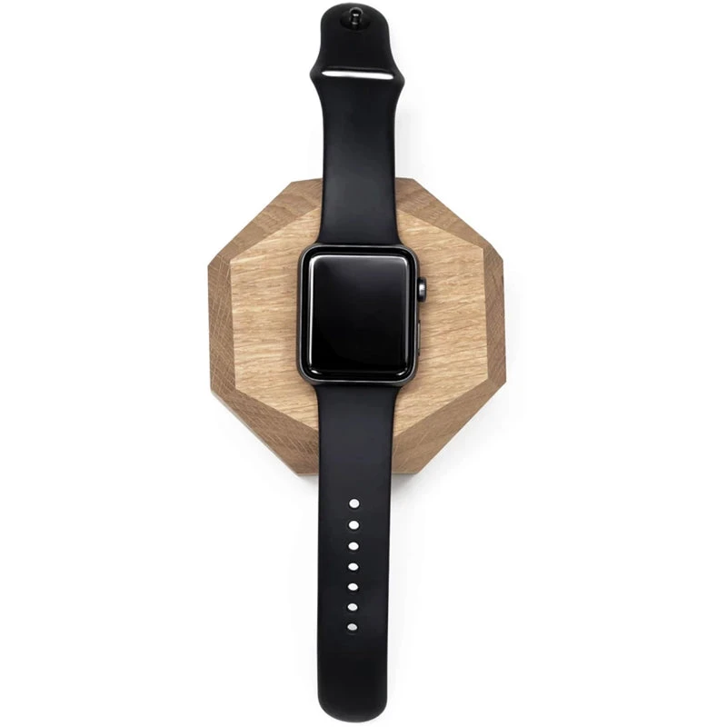 Keep your desk organized, and your space beautiful, with the Wooden Apple Watch Charging Dock from Oakywood! Handcrafted from FSC Certified solid oak or walnut wood, this Apple Watch charging dock keeps your tech securely in place and easy to locate โ all while charging it so you’re ready to grab it and go. There is a magnet hold for the Apple Watch plus micro-suction technology to make it easy to put tech on and off the dock with just one hand. It’s handpolished to have a natural wood shine and has a classic geometric look. Plus, for every order, Oakywood will plant 1 tree!