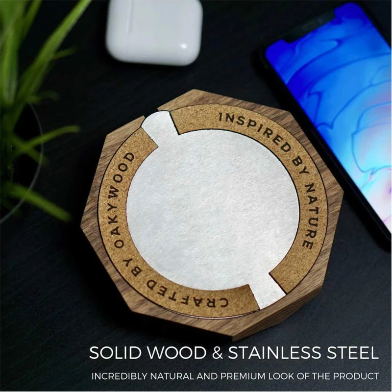 Say “no more!” to messy, tangled cords with the Wooden Phone Wireless Charger from Oakywood! Handcrafted from FSC Certified solid oak or walnut wood, this wireless phone charger charges your phone quickly (in about 3 hours!) without cords or confusion. It’s compatible with all QI enabled devices, and is case compatible to work with almost all phone cases up to 3mm thick. With a beautiful natural wood look, this wireless charging pad is perfect for your desk, office, or bedside table. Plus, for every order, Oakywood will plant 1 tree!